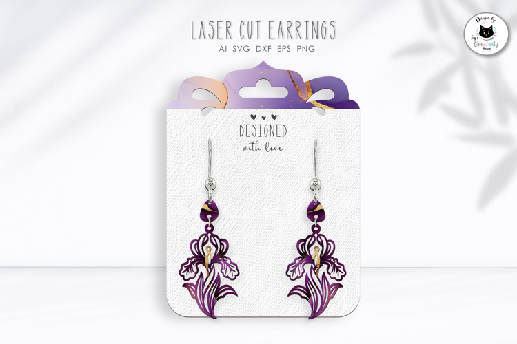 Beautiful, elegant and abstract Iris Flower Dangling Earrings ready for Laser Cutting.