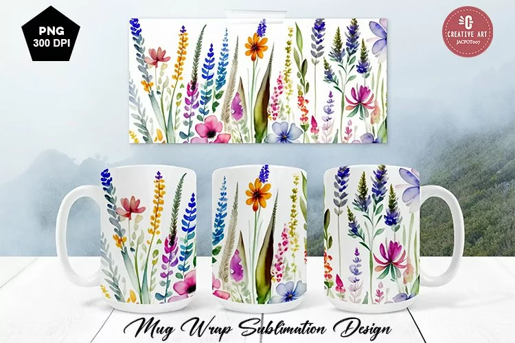 Watercolor Flowers Digital Png Wildflowers Sublimation Sublimation Mug Mug Sublimation Sublimation Design Png Mug Wrap