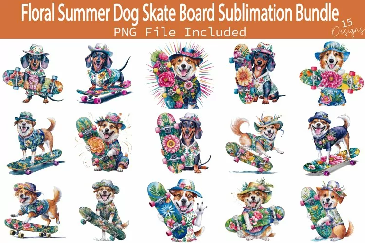 Floral Summer Dog Skate Board Sublimation Bundle example image 1
