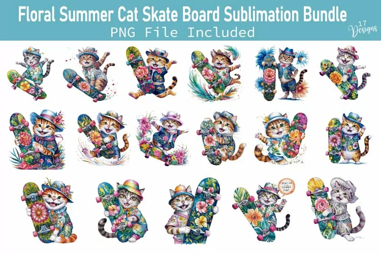 Similar Design Products to Floral Summer Cat Skate Board Sublimation Bundle