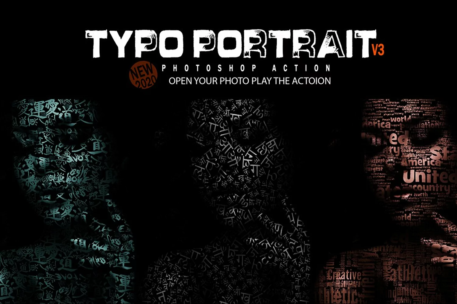 2) This action is designed to transform your photos into Typo Portrait v3 Photoshop Action.