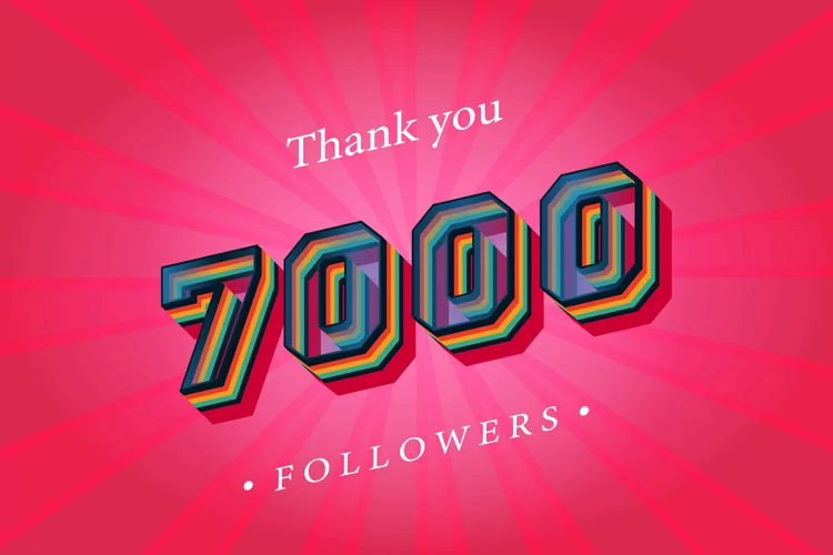 Thank you 7000 social followers and subscribers with numbers Trendy Retro text effect 3d render