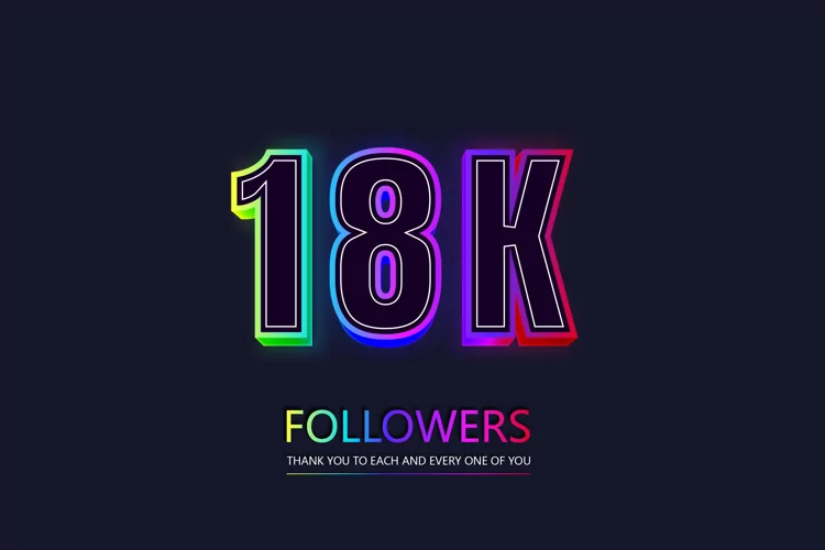 18k social followers and subscribers Thank you with numbers Trendy neon text effect 3d render.