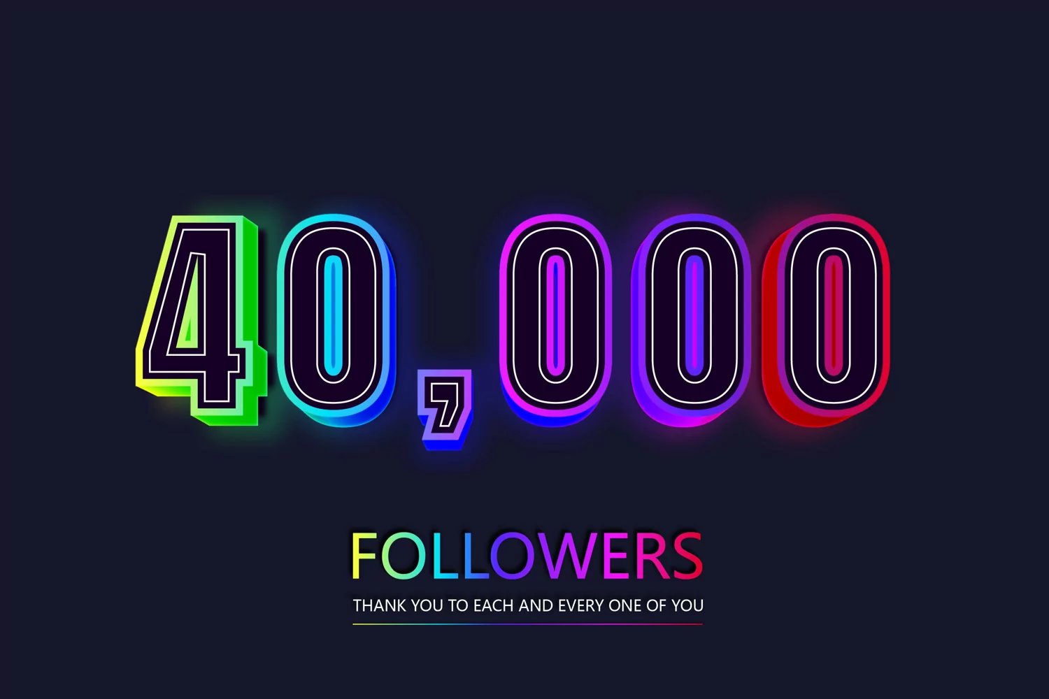 40000 social followers and subscribers neon text effect