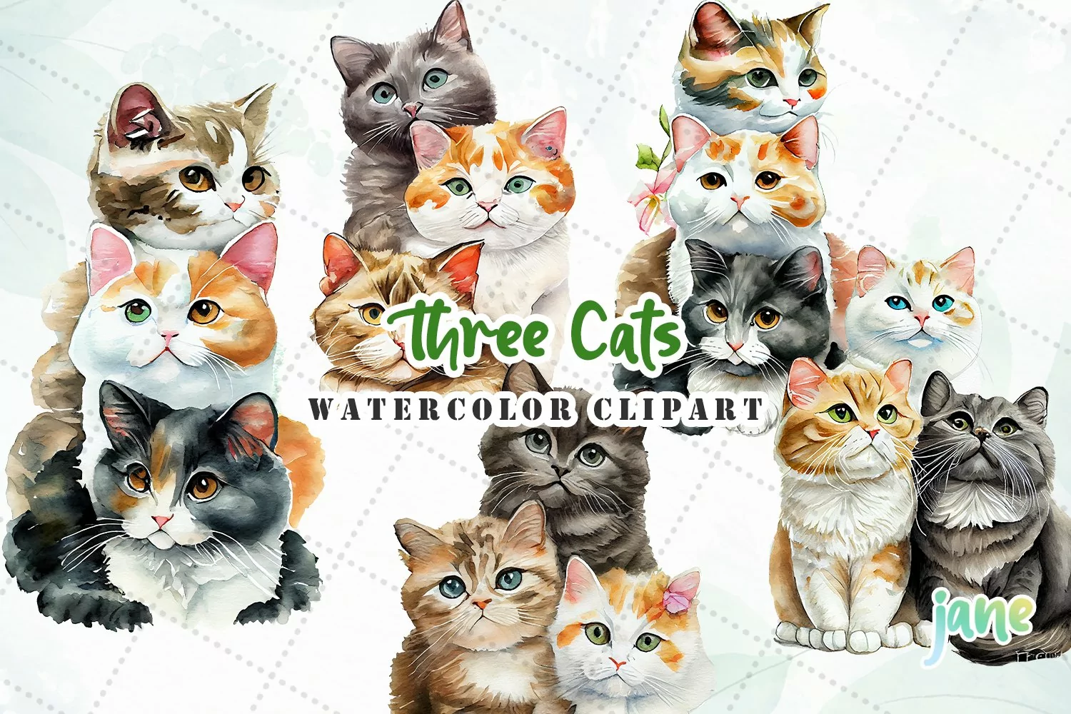 Cute Cats Watercolor Sublimation Clipart