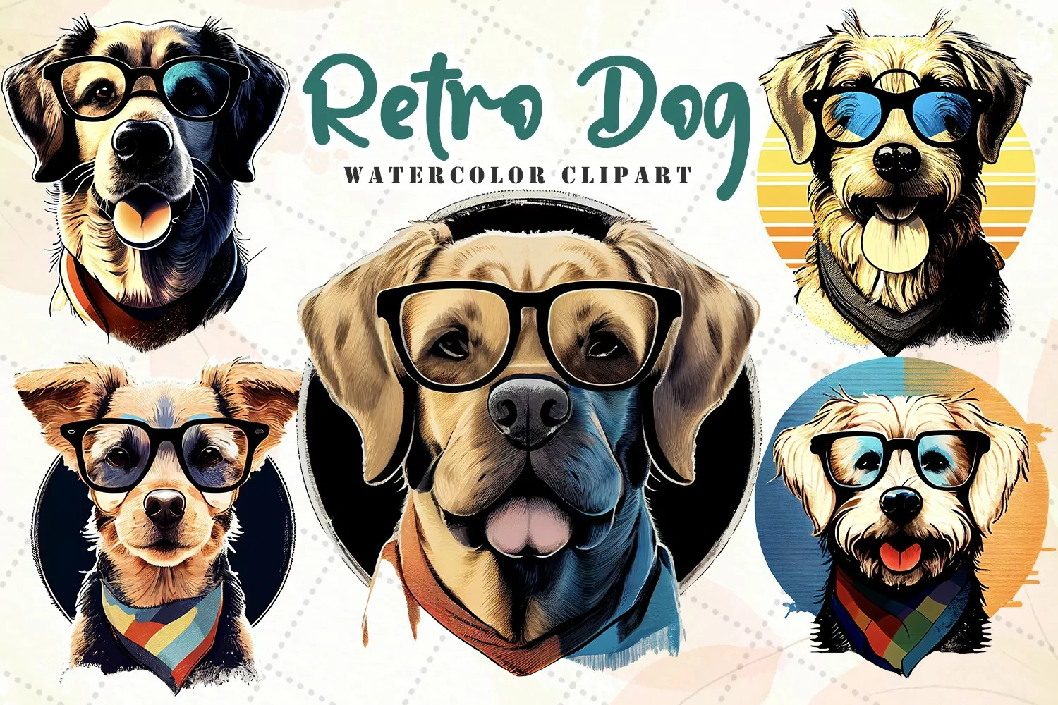 Retro Dog Watercolor Sublimation Clipart example image 1