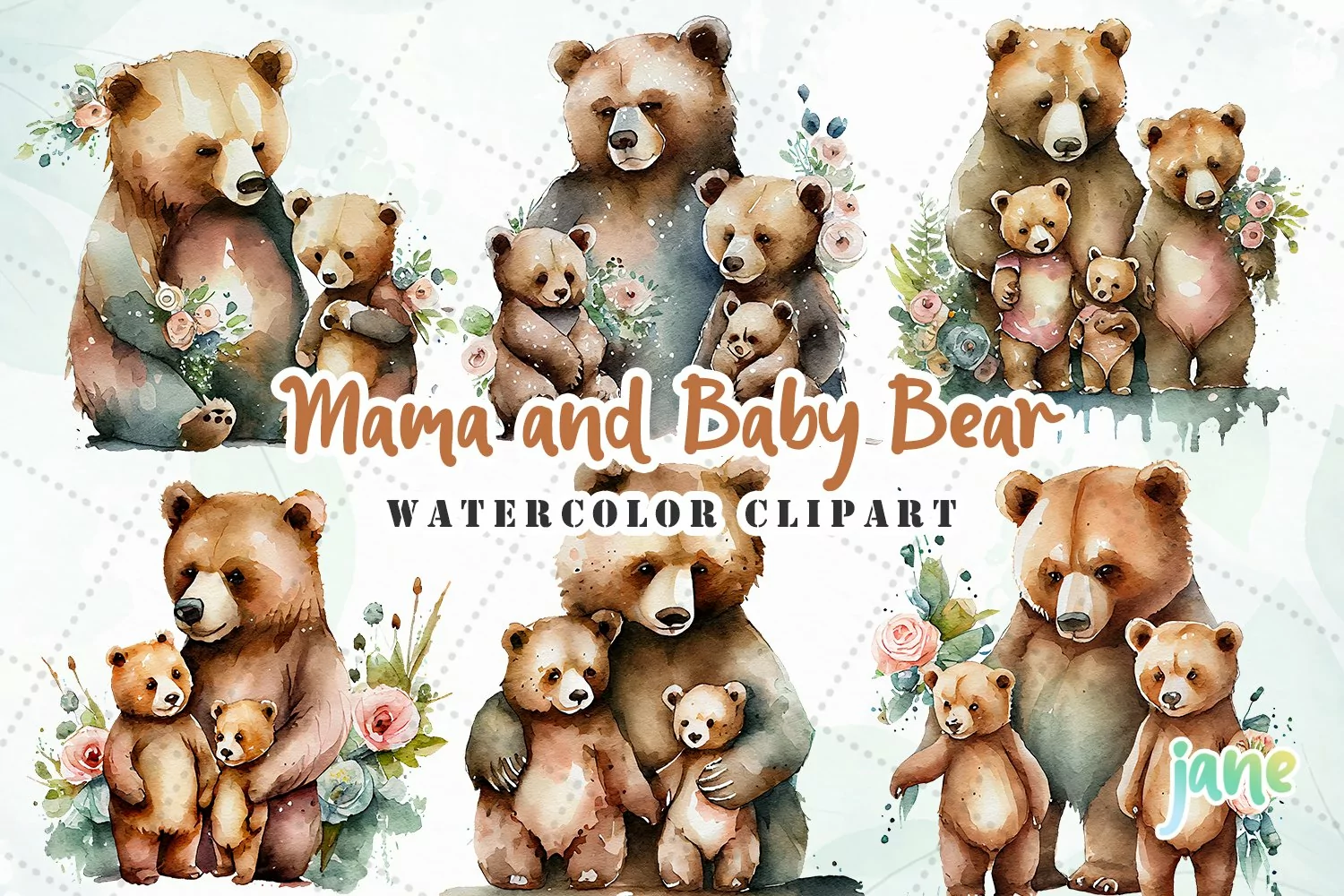 Similar Design Products to Mama And Baby Bear Watercolor Sublimation Clipart