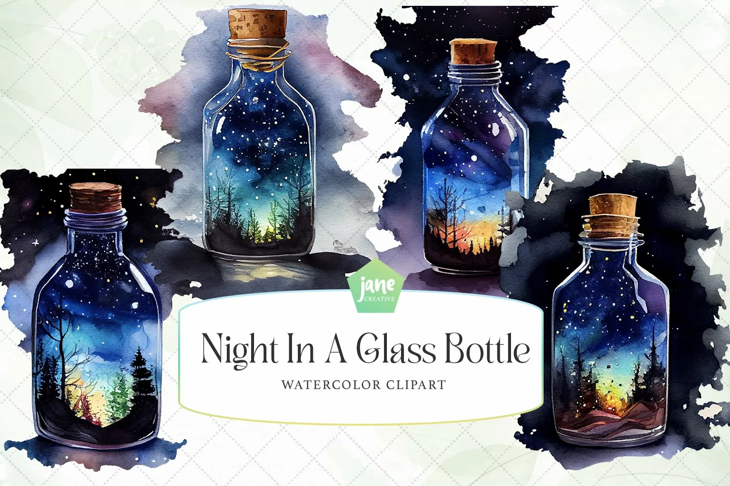 Similar Design Products to Night In A Glass Bottle Watercolor Sublimation Clipart