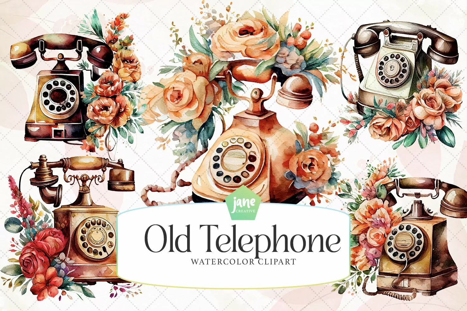 Similar Design Products to Vintage Old Telephone Watercolor Sublimation Clipart