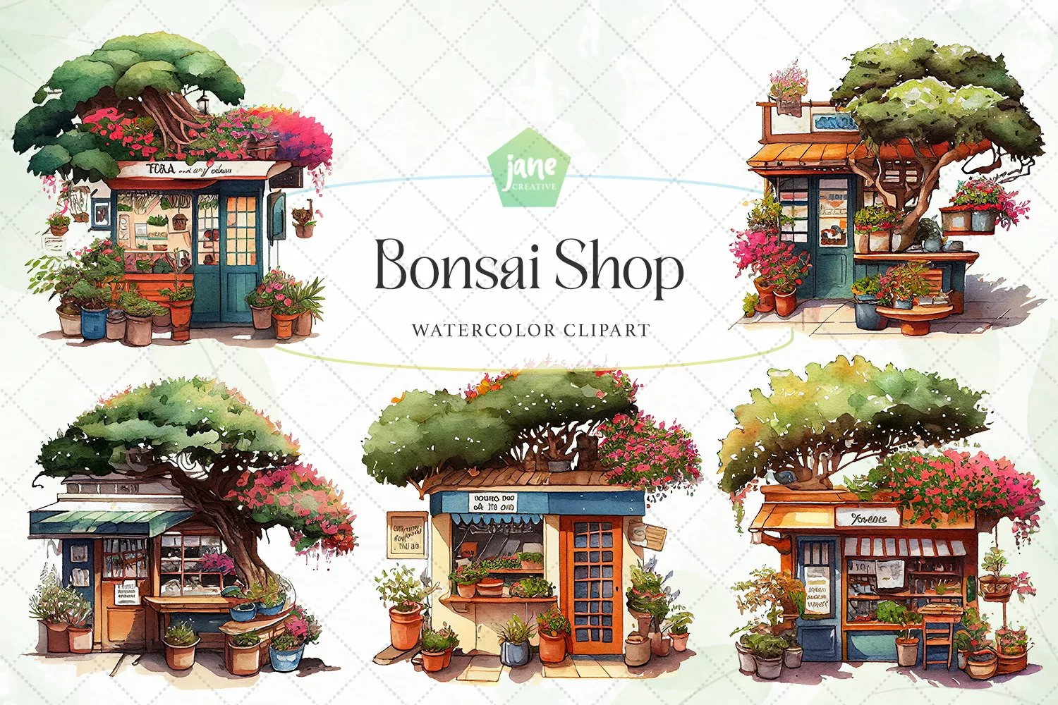 Similar Design Products to Bonsai Shop Watercolor Sublimation Clipart