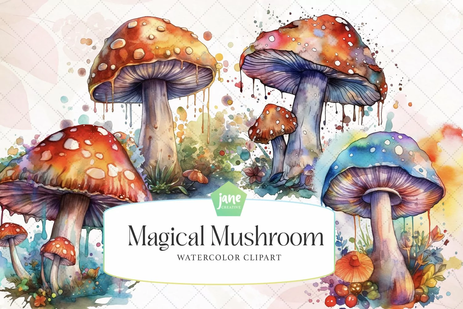 Magical Mushroom Watercolor Sublimation Clipart example image 1