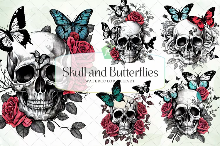 Similar Design Products to Skull And Butterflies Watercolor Sublimation Clipart