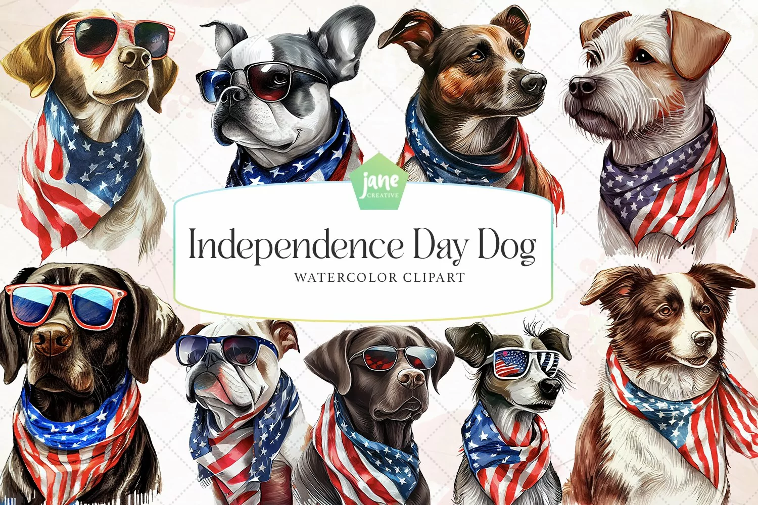 Art Digital Printable Illustrations Watercolor Clipart Instant Download Digital Download Sublimation Sublimation Design Independence Day Dog Watercolor