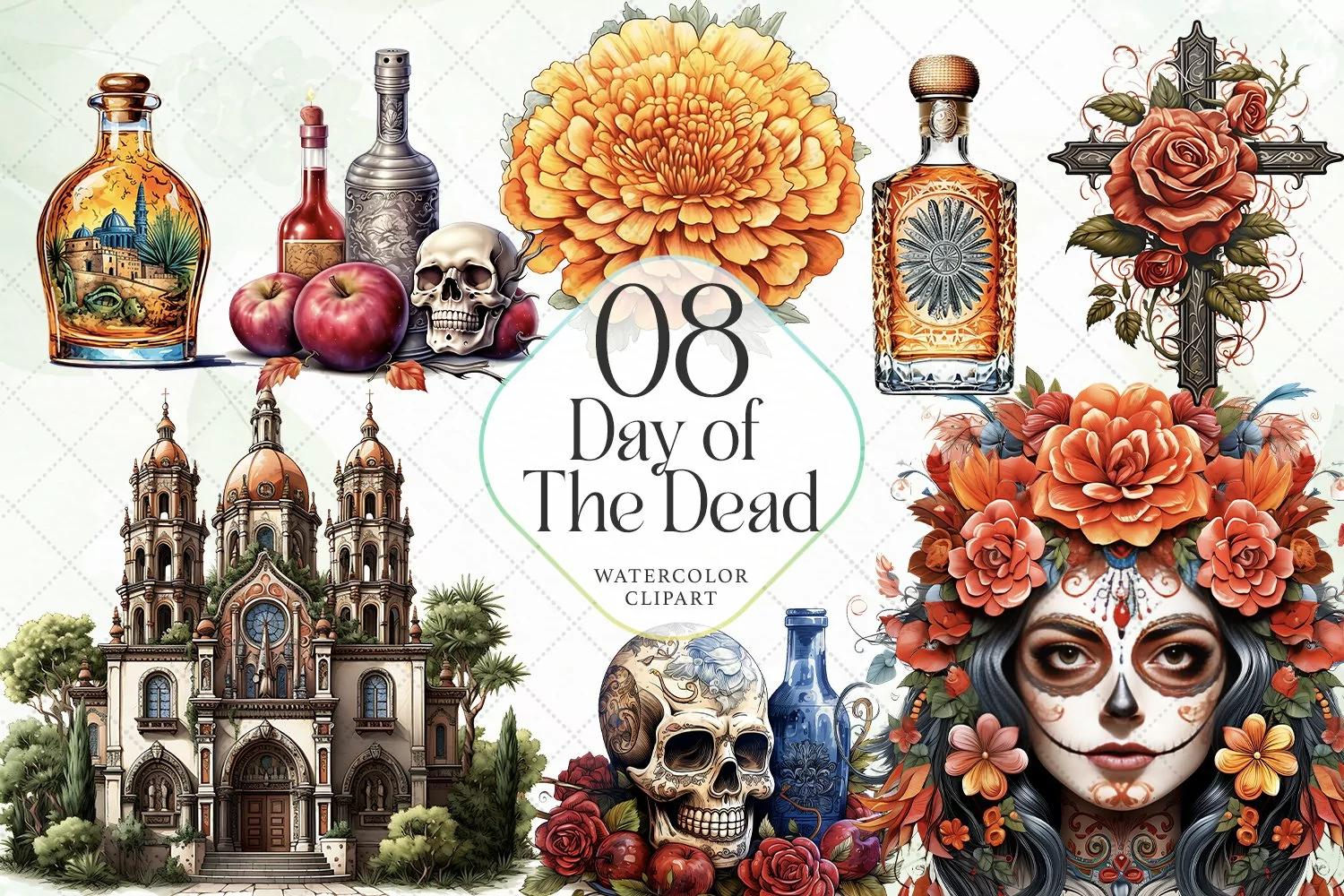 T-shirt Canvas Digital Illustrations Instant Download Paintings Watercolor Art Mugs Sublimation Design Day Of The Dead Sublimation