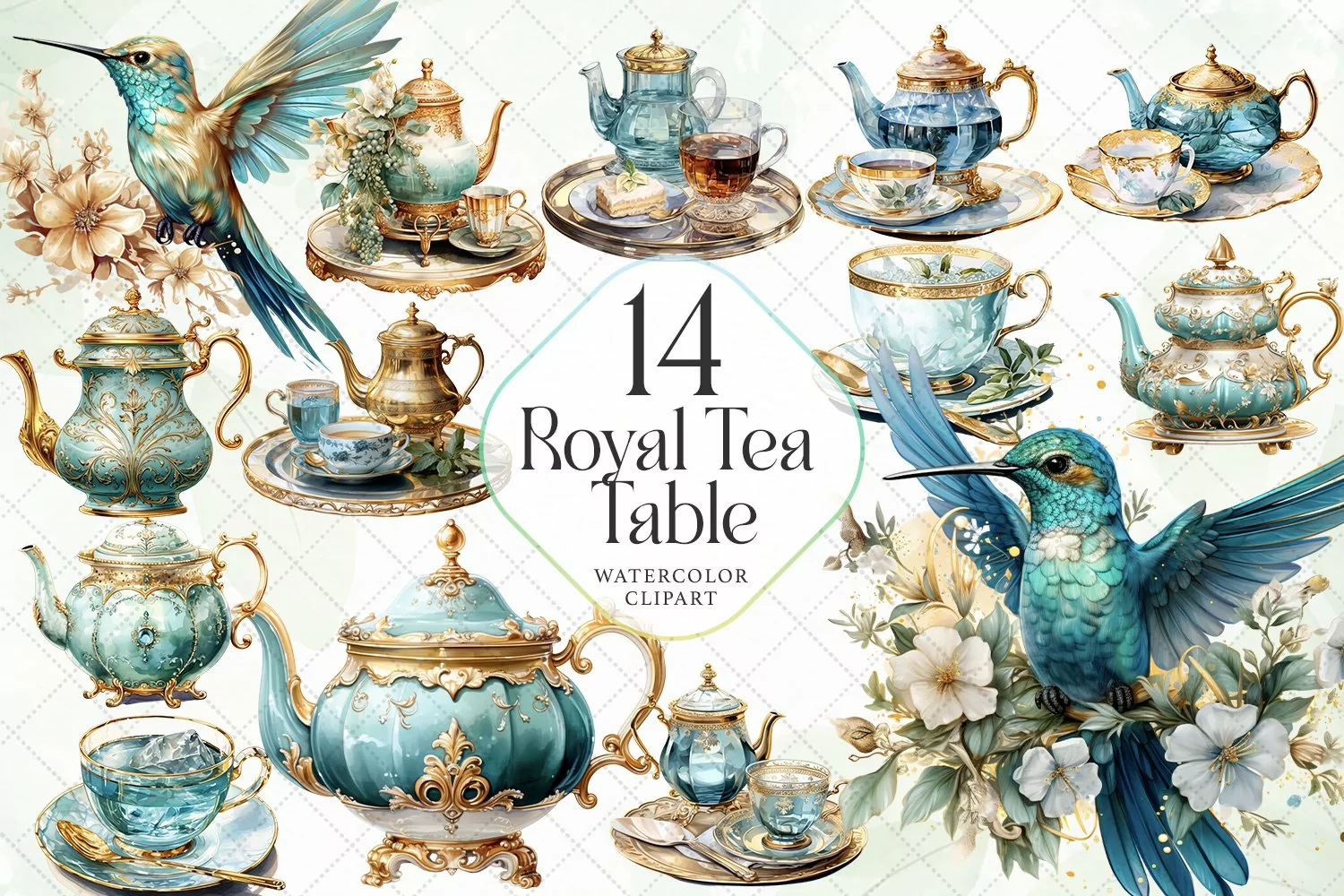 T-shirt Canvas Digital Illustrations Instant Download Paintings Watercolor Art Mugs Sublimation Design Royal Tea Table Sublimation Clipart
