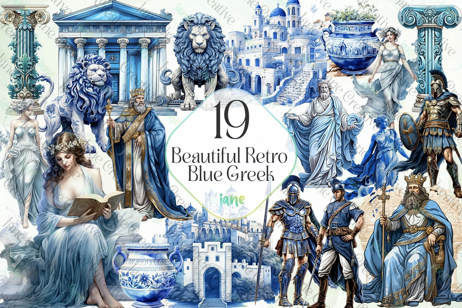 T-shirt Canvas Digital Illustrations Instant Download Paintings Mugs Sublimation Design Beautiful Retro Blue Greek Sublimation Blue Greek Sublimation