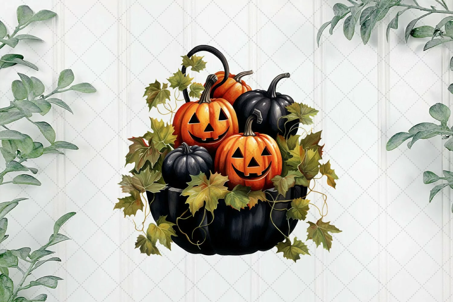T-shirt Canvas Digital Illustrations Instant Download Paintings Watercolor Art Mugs Sublimation Design Black Pumpkins Sublimation Clipart