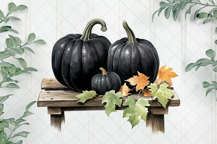 T-shirt Canvas Digital Illustrations Instant Download Paintings Watercolor Art Mugs Sublimation Design Black Pumpkins Sublimation Clipart
