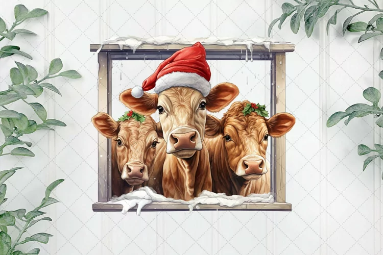 T-shirtCanvasDigitalIllustrationsInstant DownloadPaintingsWatercolor ArtMugsSublimation DesignWinter Family Animals Cow Sublimation