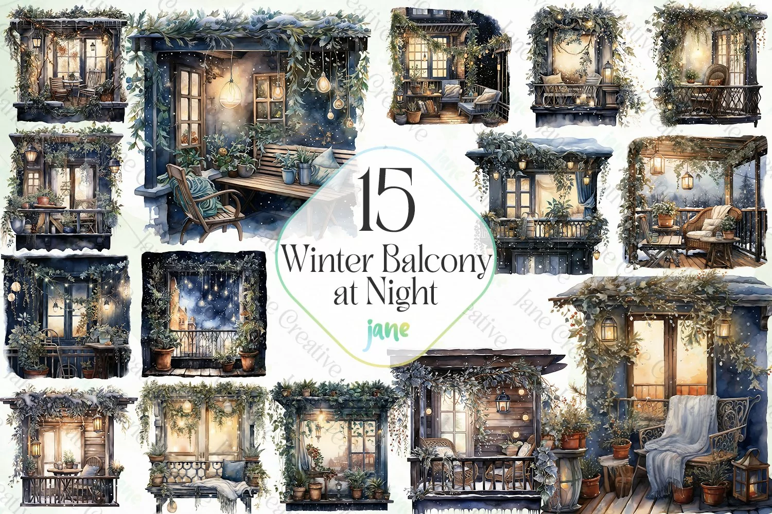 Art Digital Download Digital Design Digital Prints Cute Design Winter Vibes Sublimation Design Minimalistic Furniture Winter Balcony At Night Winter Balcony