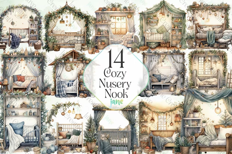 T-shirt Canvas Digital Illustrations Instant Download Paintings Watercolor Art Mugs Sublimation Design Cozy Nusery Nook Sublimation Clipart