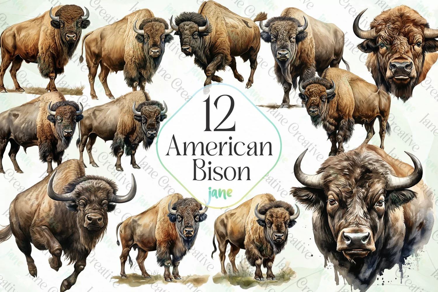 T-shirt Canvas Digital Illustrations Instant Download Paintings Watercolor Art Mugs Sublimation Design American Bison Sublimation Clipart