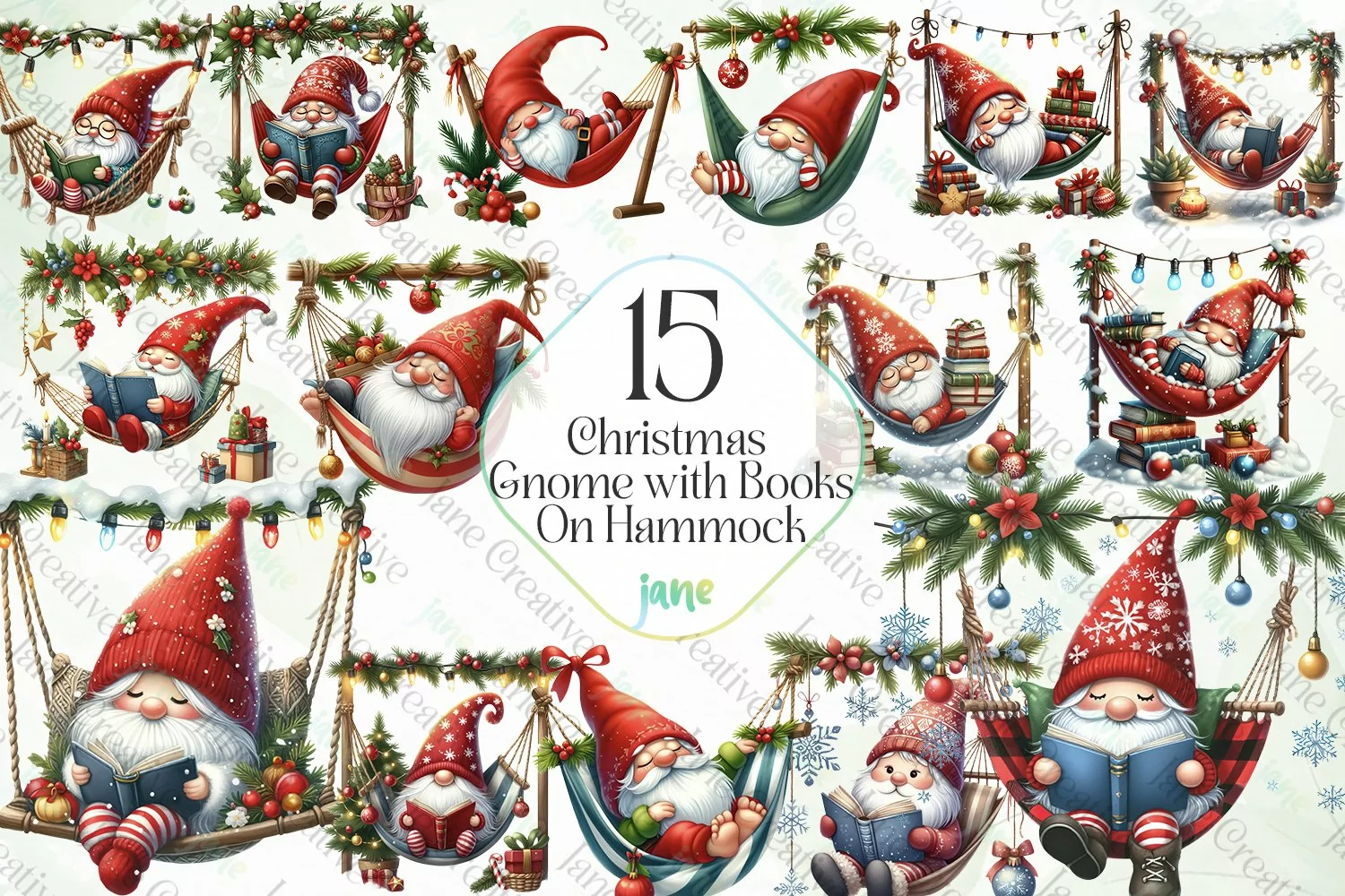 T-shirt Canvas Digital Illustrations Instant Download Paintings Watercolor Art Mugs Sublimation Design Gnome With Books On Hammock Sublimation