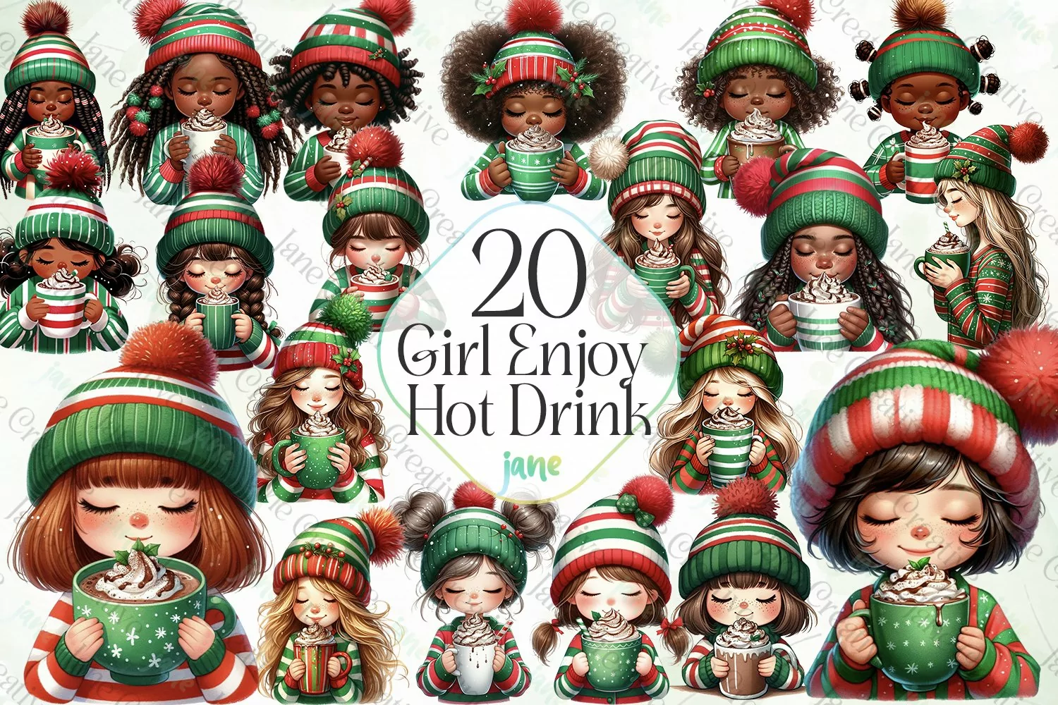 T-shirt Canvas Digital Illustrations Instant Download Paintings Watercolor Art Mugs Sublimation Design Girl Enjoy Hot Drink Sublimation Clipart