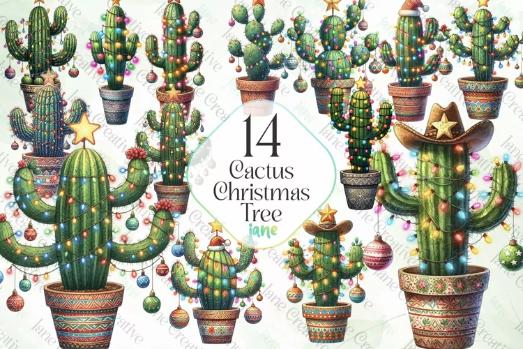 T-shirt Canvas Digital Illustrations Instant Download Paintings Watercolor Art Mugs Sublimation Design Cactus Christmas Tree Sublimation
