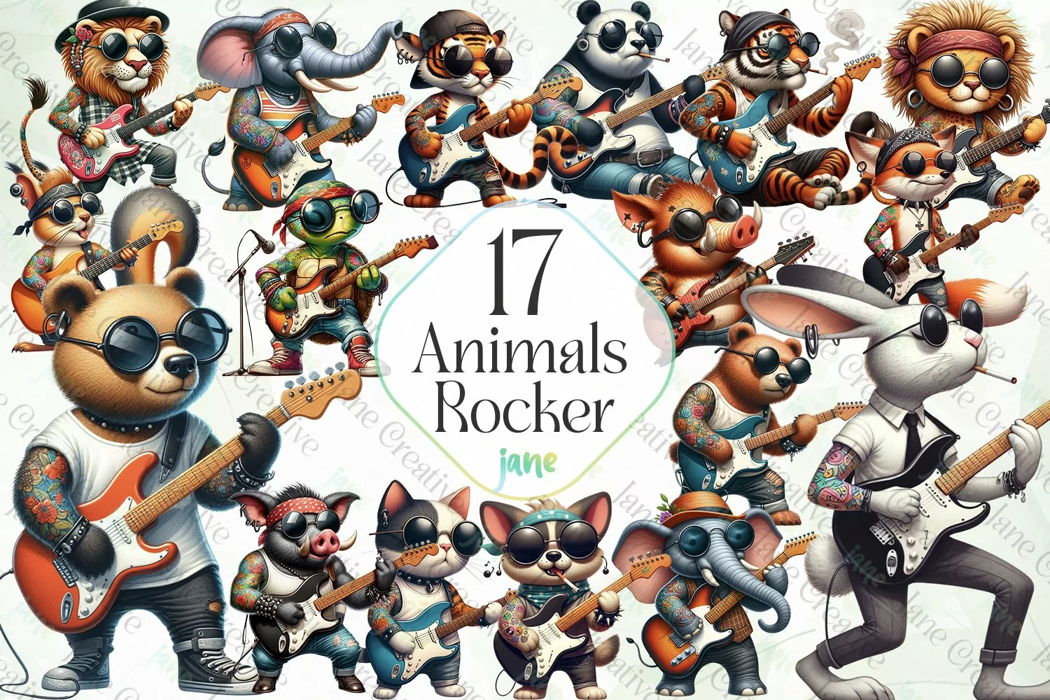 T-shirt Canvas Digital Illustrations Instant Download Paintings Watercolor Art Mugs Sublimation Design Animals Rocker Sublimation Clipart