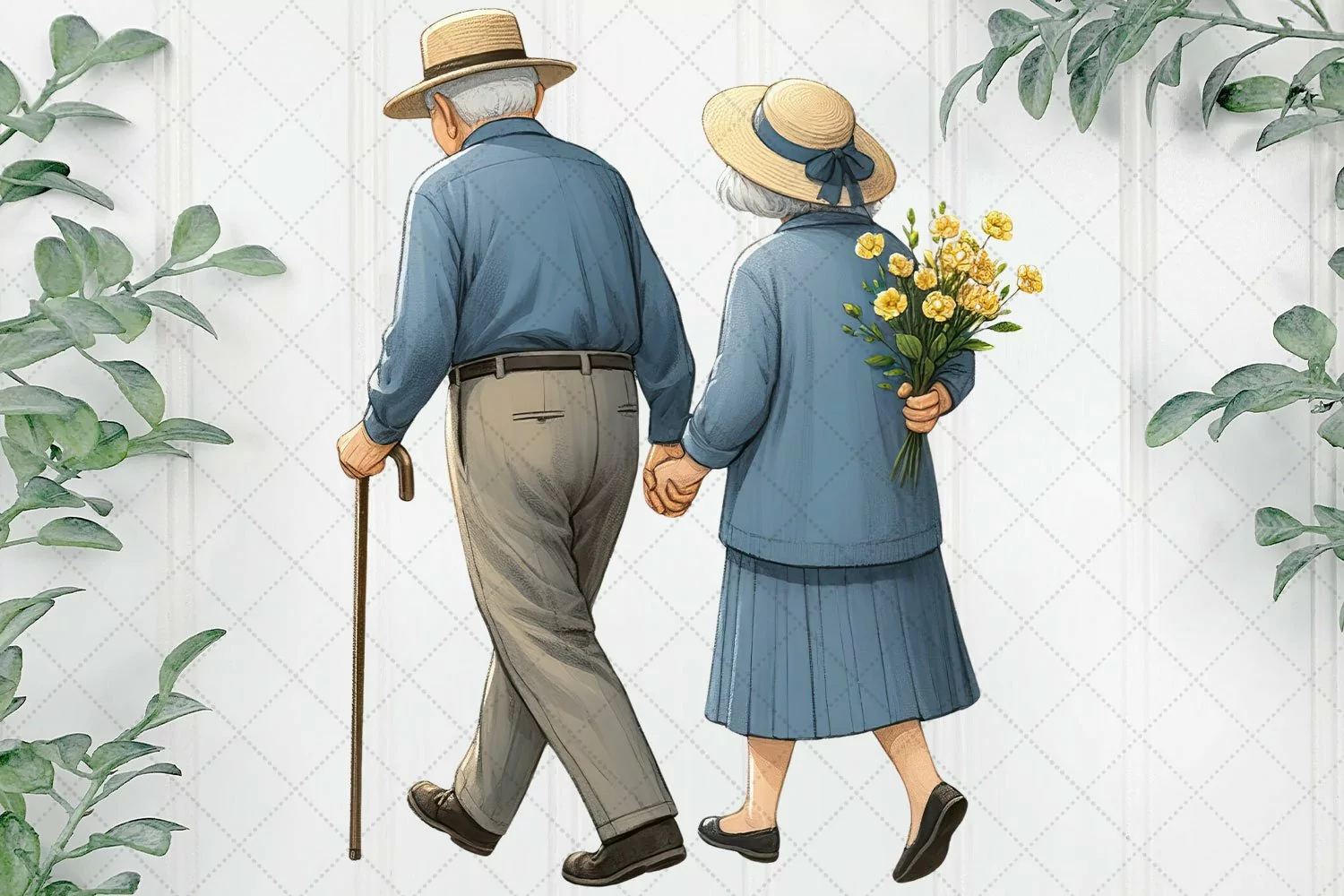 T-shirt Canvas Digital Illustrations Instant Download Paintings Watercolor Art Mugs Sublimation Design Old Couple Valentines Day Sublimation