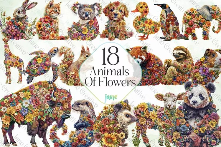 Animals of Flowers Sublimation Clipart
