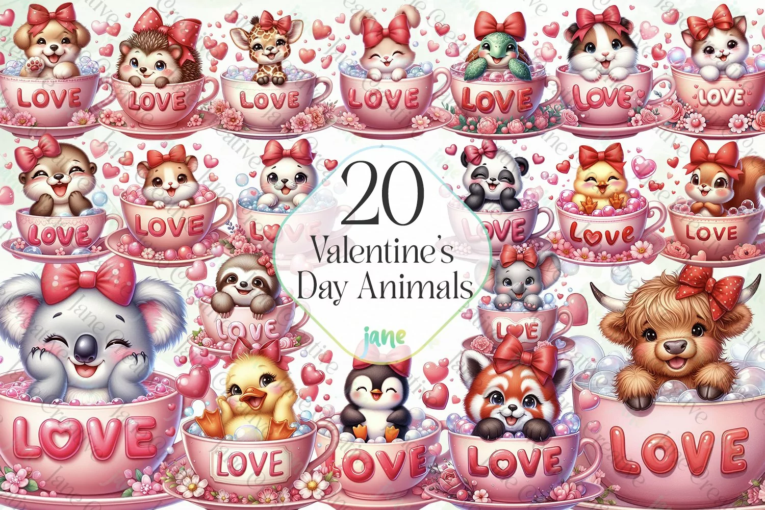 T-shirt Canvas Digital Illustrations Instant Download Paintings Watercolor Art Mugs Sublimation Design Valentines Day Animals Sublimation