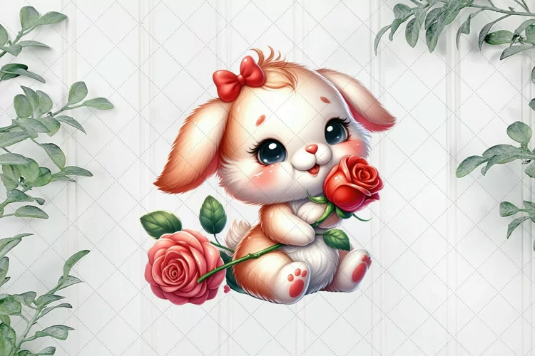 Art Digital Illustrations Instant Download Digital Download Digital Design Digital Prints Cute Design Sublimation Design Bunny And Roses
