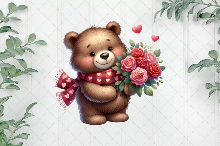 Art Digital Illustrations Instant Download Digital Download Digital Design Digital Prints Cute Design Sublimation Design Valentine's Day Love Bear