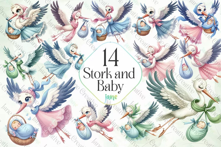 Stork and Baby Sublimation Clipart