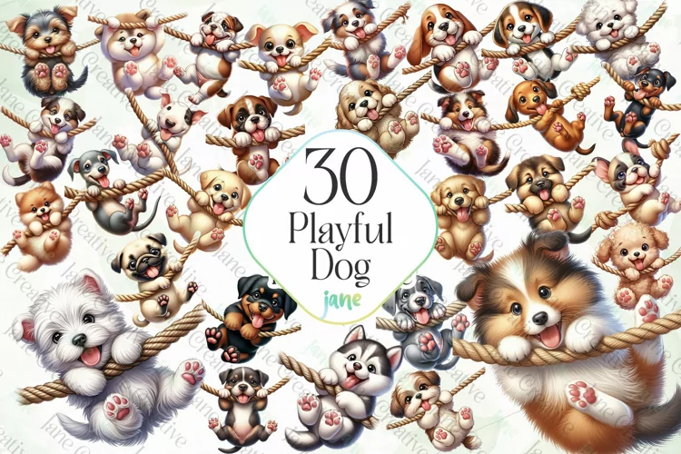 T-shirt Canvas Digital Illustrations Instant Download Paintings Watercolor Art Mugs Sublimation Design Playful Dog Sublimation Clipart
