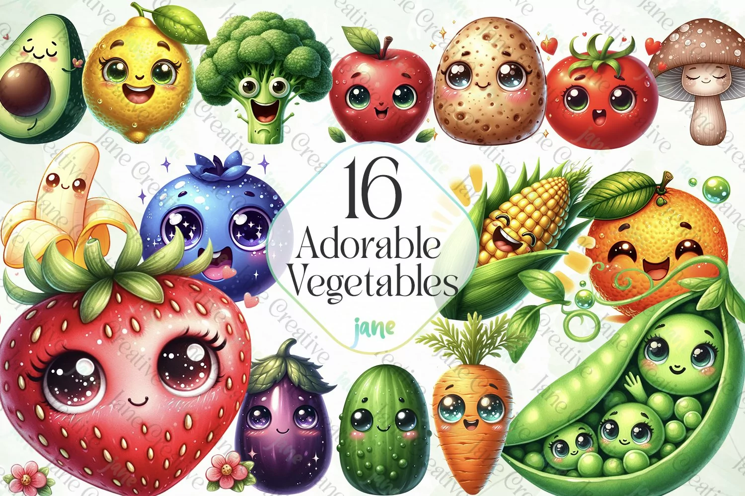 Adorable Vegetables Sublimation Clipart