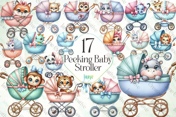 Art Digital Illustrations Instant Download Digital Download Digital Design Digital Prints Cute Design Sublimation Design Peeking Baby Stroller