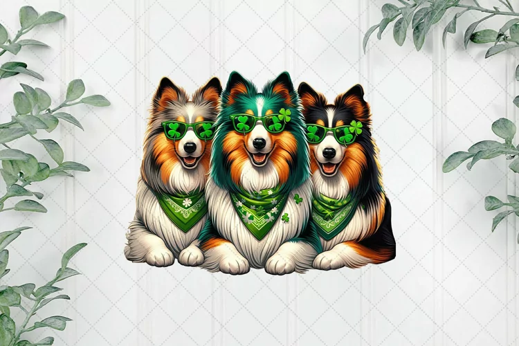 Patrick's Day Colorful Trio Rough Collie