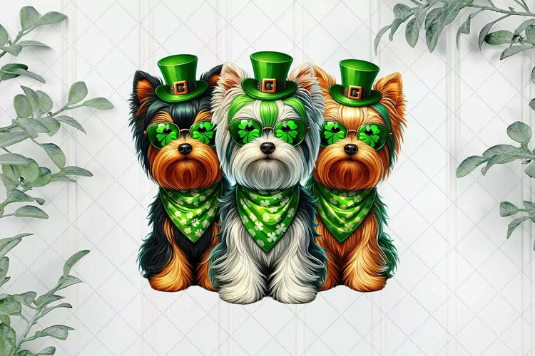 Patrick's Day Colorful Trio Yorkshire Terrier example image 1