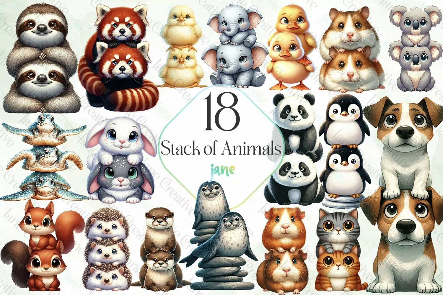 Art Digital Illustrations Instant Download Digital Download Digital Design Digital Prints Cute Design Sublimation Design Stack Of Animals