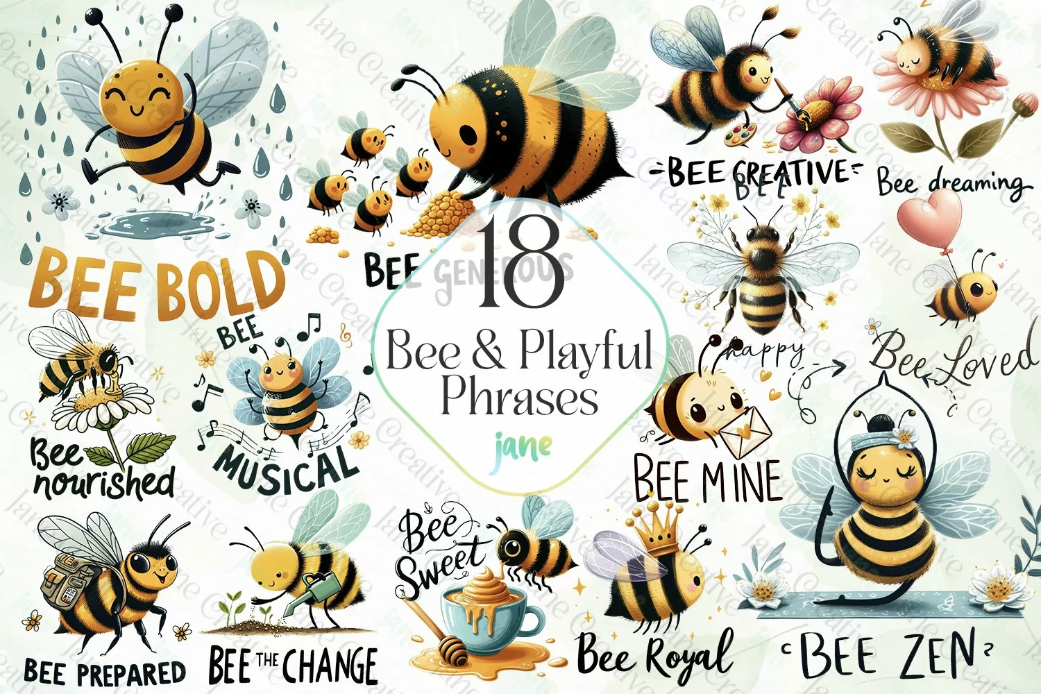 Art Digital Illustrations Instant Download Digital Download Digital Design Digital Prints Cute Design Sublimation Design Bee And Playful Phrases