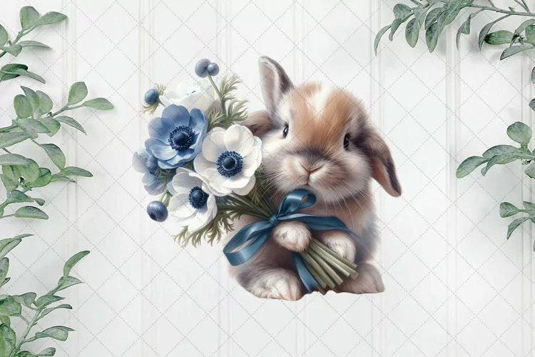 Art Digital Illustrations Instant Download Digital Download Digital Design Digital Prints Cute Design Sublimation Design Rabbits And Anemones Bloom