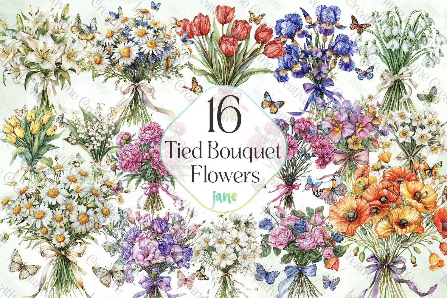 Tied Bouquet Flowers Sublimation Clipart example image 1