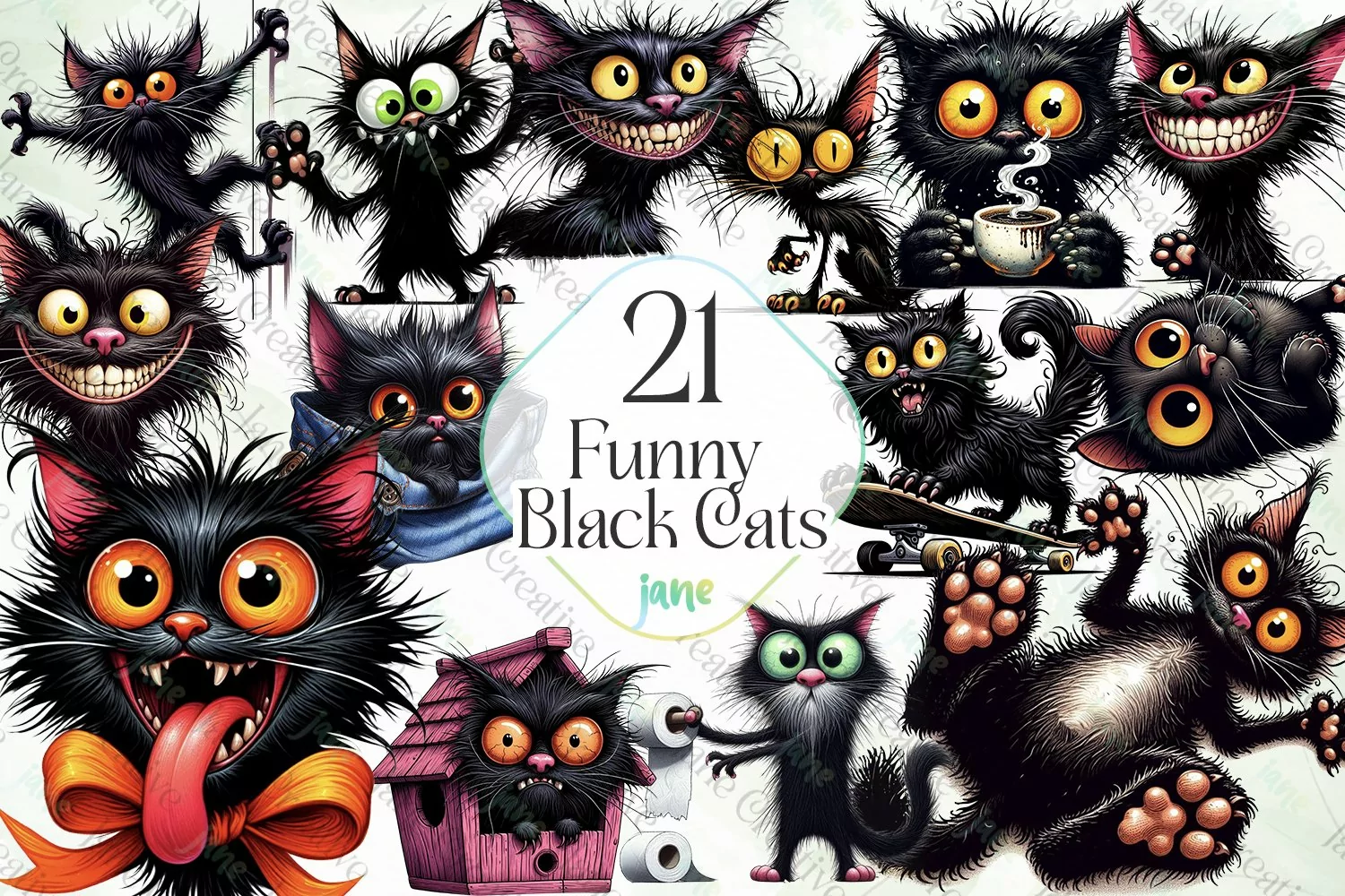 Funny Black Cats Sublimation Clipart