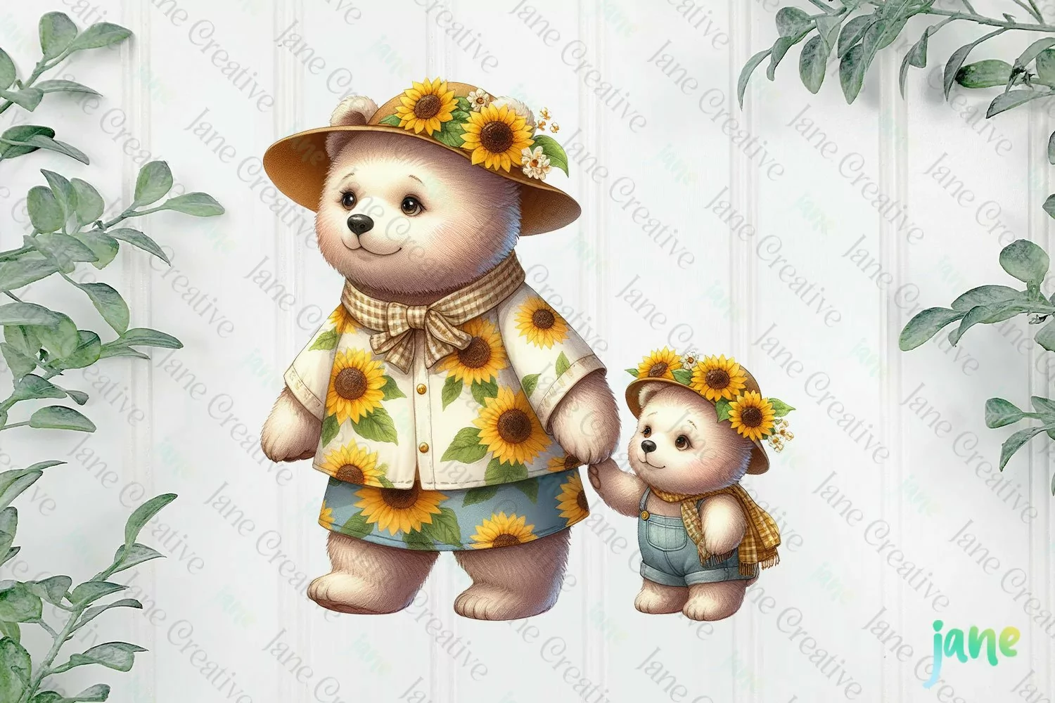 Art Digital Illustrations Instant Download Digital Download Digital Design Digital Prints Cute Design Sublimation Design Sunflower Mama And Baby Bear