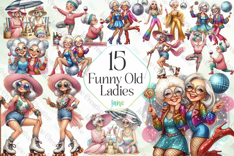 Funny Old Ladies Sublimation Clipart