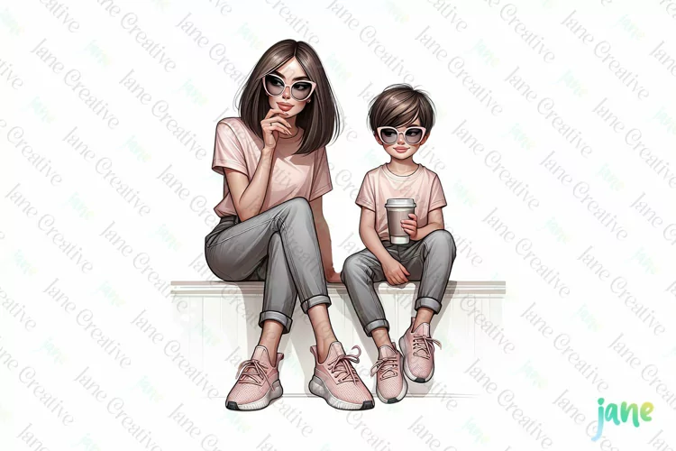 Art Digital Illustrations Instant Download Digital Download Digital Design Digital Prints Cute Design Sublimation Design Stylish Mom And Child