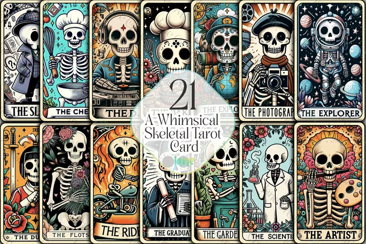 Similar Design Products to Whimsical Skeletal Tarot Card Clipart